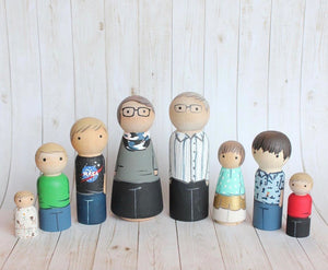 Create a peg doll family for yourself or a loved one! These custom hand painted dolls are perfect for a keepsake gift and are fully customized to suit your needs. Use for decor or play, painted with non toxic paint.